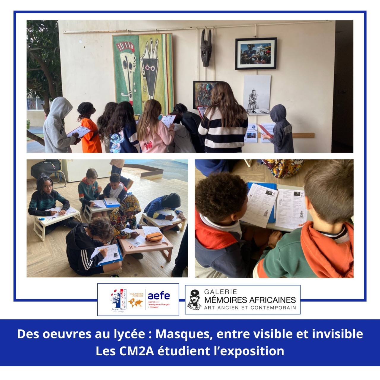 Cette exposition est rendue possible grâce au partenariat avec la galerie Mémoires Africaines, que le lycée remercie chaleureusement. Grâce au prêt de ses œuvres, la galerie permet à nos élèves d’enrichir leur parcours d’Éducation Artistique et Culturelle (EAC), en leur offrant un contact direct avec des œuvres issues des cultures africaines et de la création contemporaine.