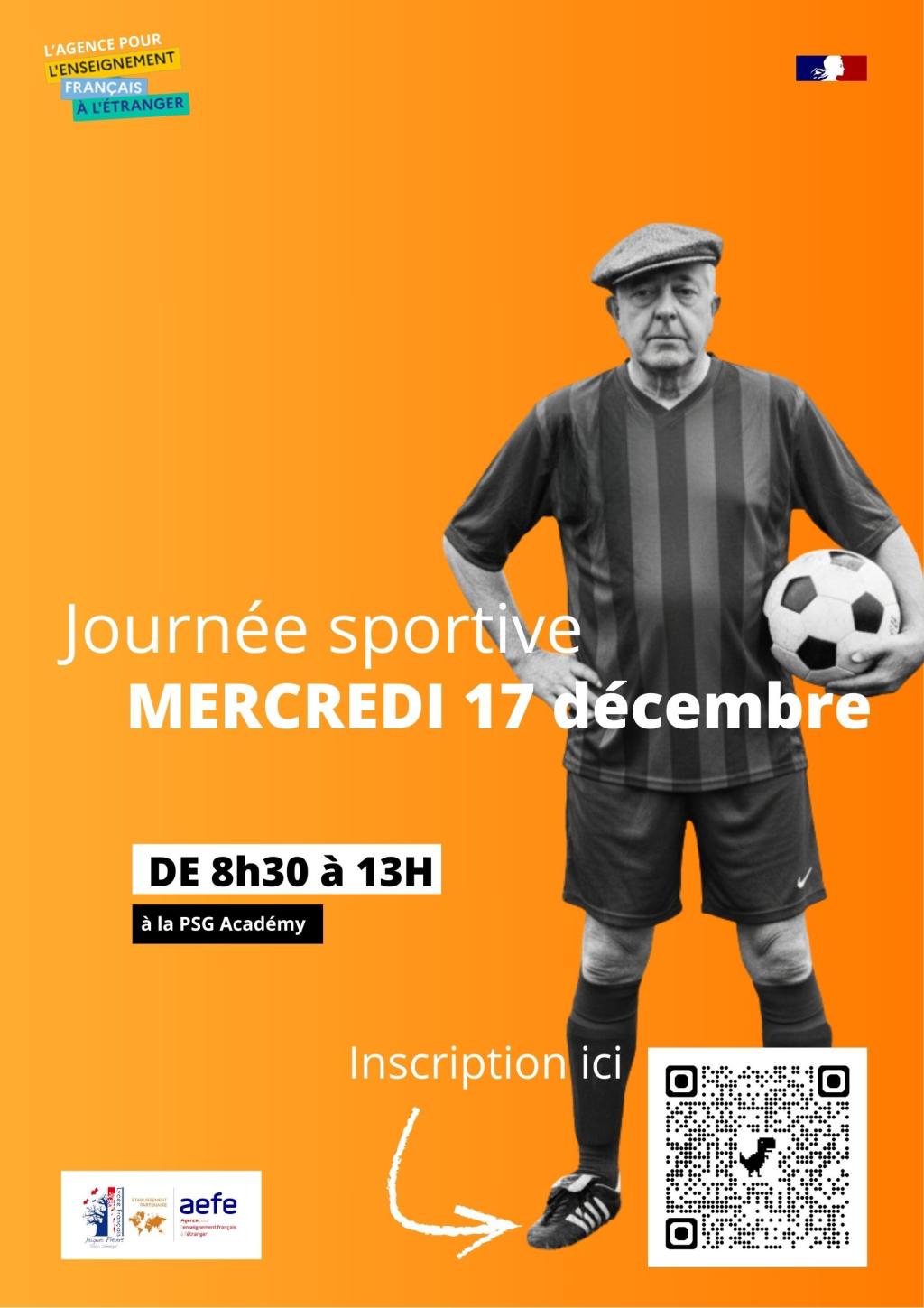 La grande journée sportive approche : rendez-vous le mercredi 17 décembre 2025, de 8h30 à 13h, pour une matinée pleine d’énergie à la PSG Academy. Les élèves du secondaire qui souhaitent participer doivent impérativement s’inscrire ci-dessous. L’organisation sur place dépend du nombre de participants : chaque inscription compte.